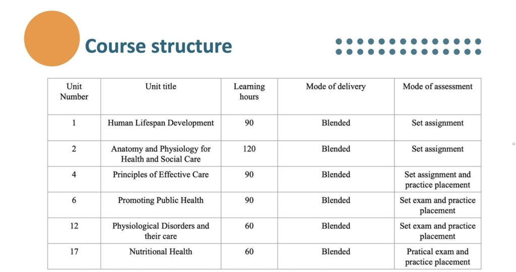Leading to an optional Advanced Diploma in Health and Social Care (EQF Level 5), Duration 2 Years full-time.